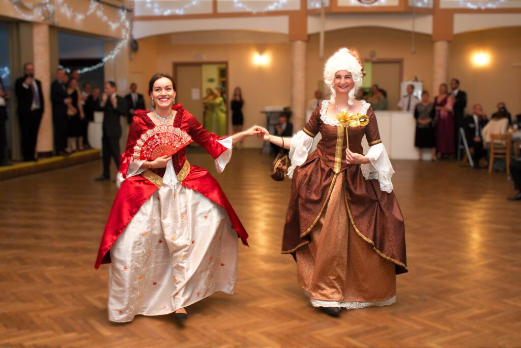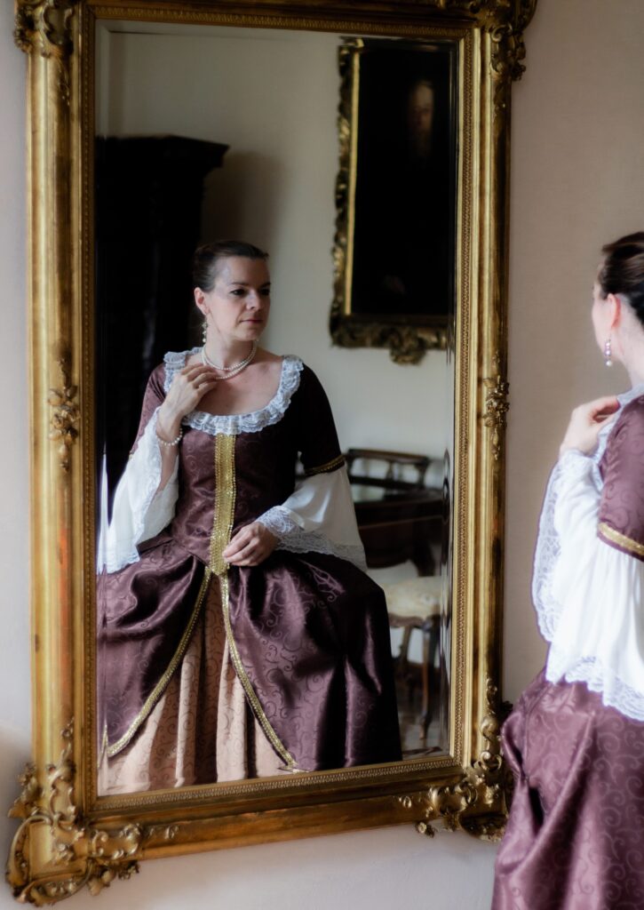 Další variantou je zapůjčení kostýmů pro promenádu v zámeckém parku nebo pro skupinovou prohlídku zámku s výkladem. Samotné oblékání se může stát součástí programu – probíhá v klidném tempu a často se promění v týmovou aktivitu, při níž si účastníci navzájem pomáhají s dobovým oděvem. Celý zážitek může doplnit profesionální fotograf, který zachytí atmosféru historického dne.