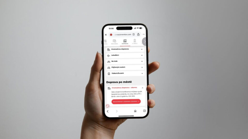 - praktické informace o dopravě, parkování či příjezdu do Brna,