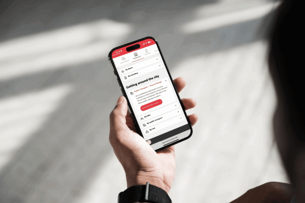 Aplikace je webová, takže si ji účastníci nemusí stahovat – stačí otevřít odkaz ve webovém prohlížeči. Je přehledná, snadno ovladatelná a plně přizpůsobitelná konkrétní akci. K účastníkům konference ji můžete distribuovat pomocí odkazu nebo QR kódu.